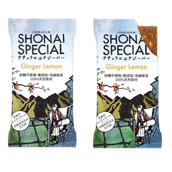 ■商品説明庄内産ナチュラルエナジーバー ”地元で育つ栄養価の高い「スーパーフード」を現代に” これこそが日本有数の米どころである山形県の庄内平野で暮らしている私たちからの願いです。 この考えから生まれたSHONAI SPECIALは、有機発芽玄米と庄内柿を使用し、100%自然由来の原材料のみで作られました。 現代のアクティブなライフスタイルをサポートする “私たちの”ナチュラル・エナジーバー 手軽だけど、ちゃんと美味しい 「SHONAI SPECIAL」に、砂糖や保存料といった添加物は一切加えていないので、「からだに必要なもの」だけを補うことができます。食感はソフトで、砕いたナッツがアクセント。 〇ジンジャー×レモン オーガニックのジンジャーパウダーとレモンパウダーを加えており、ピリッとスパイシー。飽きのこない味です。 【100%天然素材 ・ 砂糖不使用・無添加 ・Vegan-OK・グルテンフリー】■内容量1本:48g■原産国山形県庄内地方■ブランド名Shonai Special(ショウナイスペシャル) 生まれ変わりの聖地から、伝統食を再生させた古くて新しいエナジーバー 山形県の庄内地方は四方を海と山に囲まれ、いにしえの文化が今もなお残る土地です。 この地域のシンボルである出羽三山は現代においても山伏たちの修験の場となっており、「よみがえりの聖地」と呼ばれています。 また、日本でも有数の広大な平野を抱え、農業が盛んな地域でもあります。中でも、お米の質は高い評価を受けており、江戸時代にはこの地域の米を京都や大阪に運ぶため、北前船が開発されたほど。さらに、種無し柿の発祥地でもあり、この柿の木が各地に広まり、今や全国で作られています。 この町に根づく「米」と「柿」の文化を受け継ぎそして現代に合う形へと再生させるべく、ナチュラル・エナジーバー「SHONAI SPECIAL」は誕生しました。