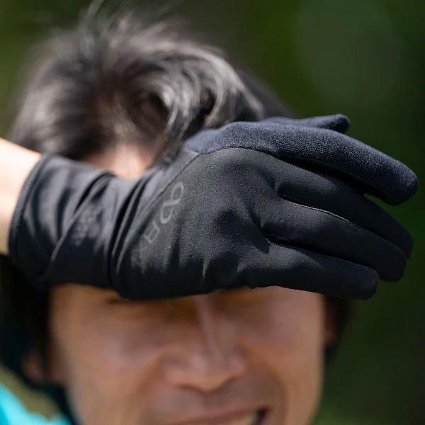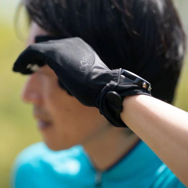 手の平部分は吸汗性の高いパイル地を採用。汗をかいた際には手袋でそのまま拭くことも可能です。