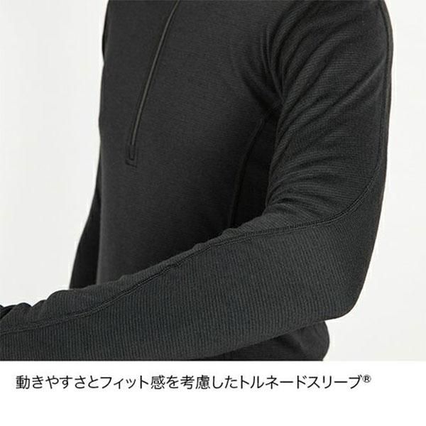 未防縮メリノウールとポリエステルのハイブリッドベースレイヤーです。