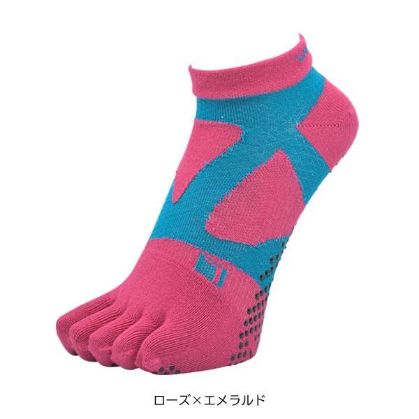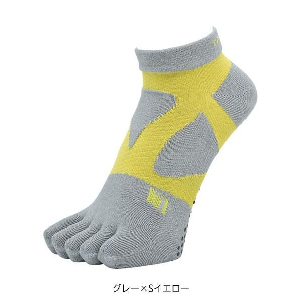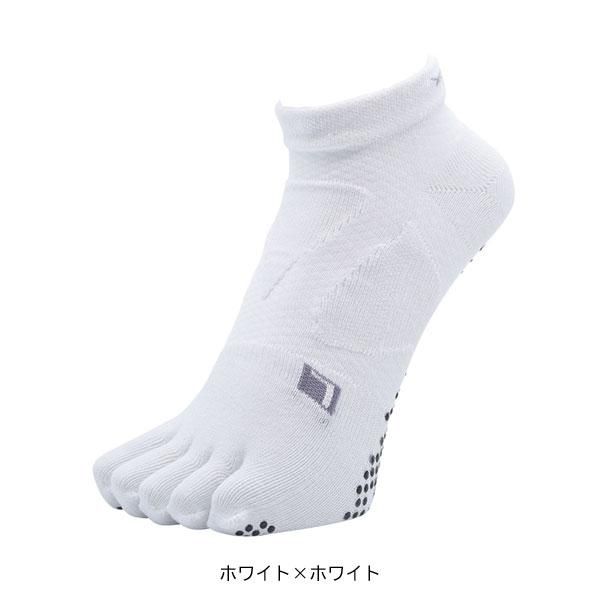 土踏まずの落ち込みを防止する「スパイダーアーチサポートシステム」によって、疲労軽減や衝撃分散とともに、軽快なフットワークも実現。アクティブな動きにも対応するショート丈とし、アッパーはメッシュ編みで通気性と放熱性を高めました。またソックス生地の素材にはプラスチックボトルなどをリサイクルすることで作られるCOOLMAXR EcoMadeを使用。吸湿性や速乾性と共にサスティナビリティーも高めています。足底には、足運びに応じたグリップ力を効果的に発揮できるシリコンゴムを配置。シューズとの一体感を高めながら、路面からのフィードバックを細やかに感じ取ることを目指しました。