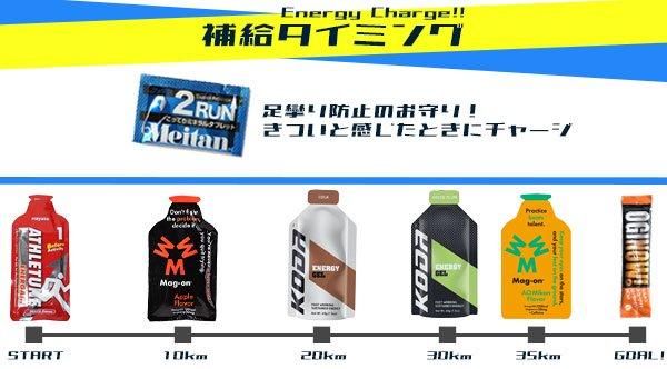 ■セット内容コーダ エナジージェル2本 マグオン エナジージェル 2本 アスリチューン エナゲイン1本 Honey Action オギナウ! 1本 梅丹本舗 2run 1袋 ■品名フルマラソン完走セットver.4 ■商品説明マラソン完走経験豊富なスタッフが考えるマラソン完走セット!! トレイルランニングやマラソンなど幅広い レースを完走した経験豊富なスタッフたちが考えたフルマラソン完走セットです。 立ちはだかる「30kmの壁」 30kmの壁とは、30kmに差し掛かるタイミングで急に体が動かなくなり大失速してしまうことです。フルマラソンを完走するためには必ず乗り越えないといけない壁です。 エネルギー補給が攻略のカギ 30km過ぎで大きく失速してしまう原因は、筋肉疲労などはもちろんですが、直接の原因はエネルギー切れと言われています。 レース中に効率良くエネルギーを補給することがマラソン完走を支えてくれます! ■マラソン完走セット詳細■START [Enemoti ] ほどよい甘みと食感、腹持ちの良さ&原料となるお米で、でんぷんのほか、たんぱく質やビタミンが豊富に含まれた栄養価の高いエネルギー摂取!時間をかけて吸収される糖質「パラチノース」を含有することによって血糖値を急上昇させずにスタミナが長時間持続♪スタート30分前くらいに食べて、レースに挑みましょう! ■10km [MEDALIST エナジージェル ] 圧倒的食べやすさの超濃縮ジェル。ゼリーとジェルの中間くらいで、程よい食感です♪クエン酸も入っているので、疲労感も軽減!他のジェルと比べ歯ごたえがあり、後に残らずすっきり補給できます♪ ■20km [KODA エナジージェル ] 即効性の高いエネルギージェルです。なめらかで口の中でべたつかないスムーズな粘度で、のどの奥が刺激されたり不快な後味を残すことはありません。女性に人気のドロップ味♪昔からある定番商品で、最大限にパフォーマンスを持続させてくれます! ■30km [KODA エナジージェル カフェイン入り] 圧倒的食べやすさの超濃縮ジェル。ゼリーとジェルの中間くらいで程よい食感です♪薄い梅酒味で、甘すぎる味が苦手な方におすすめ。ここからカフェイン入りのエネルギーを補給し後半へ備えよう! ■35km [MEDALIST エナジージェル カフェイン入り] 圧倒的食べやすさの超濃縮ジェル。ゼリーとジェルの中間くらいで程よい食感です♪ここからカフェイン入りのエネルギーを補給し後半へ備えよう! ■GOAL! [HoneyAction オギナウ!] 完走した後にアミノ酸摂取も忘れずに! 筋肉へのダメージの回復を早めてくれます♪ ■お守り [梅丹本舗 2run] 足が攣りそうやなと思った時にこれがあれば安心!攣ってからも即効性があるので早めに摂取しよう! ■納期★平日昼12時までの注文で2-3日出荷可能★ ■配送方法メール便、宅配便