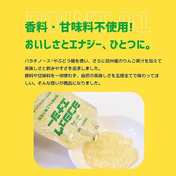 パラチノース(ドイツ製造)、果糖ぶどう糖液糖、濃縮りんご果汁、ぶどう糖、寒天、食塩/クエン酸(Na)、ゲル化剤(増粘多糖類)