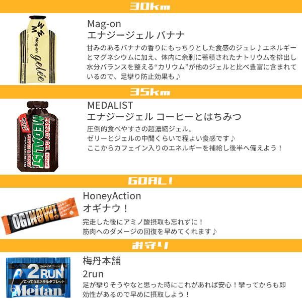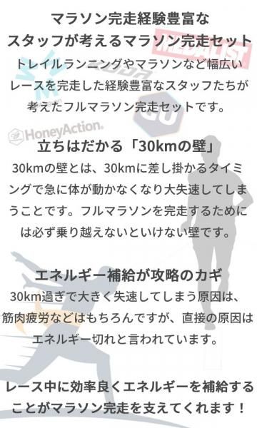 レースを完走した経験豊富なスタッフたちが考えたフルマラソン完走セットです。