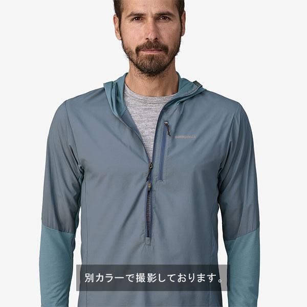 不確かな天候下の山で走るときには欠かせない、撥水性と速乾性と通気性を備えた超軽量なウインドシャツ。フードと袖の下部にストレッチニットを施し、有機フッ素化合物(PFC/PFAS)不使用のDWR(耐久性撥水)加工済み。ポケットに本体を収納できるので携帯も容易。フェアトレード・サーティファイドの工場で製造