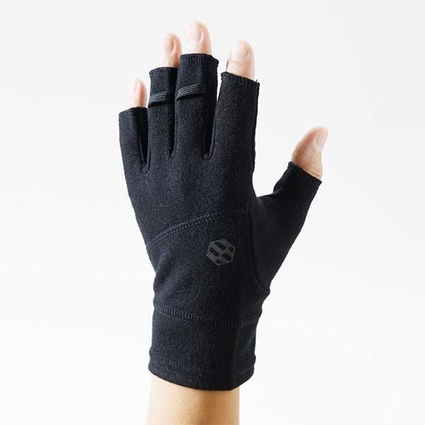 指先は解放しつつ最大限まで防寒性を確保出来る第一関節での丈感。