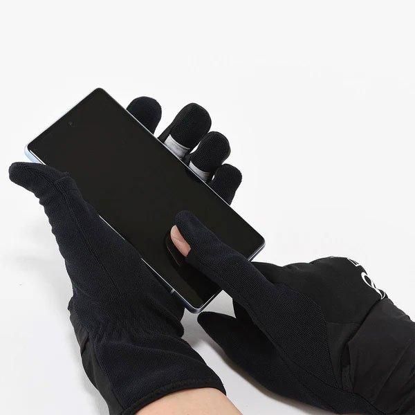 親指と人差し指を出せるのでスマホ操作だけでなく、シューレースを結ぶ時や、財布からお金を取る時、そしてレース中のジェル補給でも袋を簡単に切る事ができランニング中の”手間”が大幅に削減。