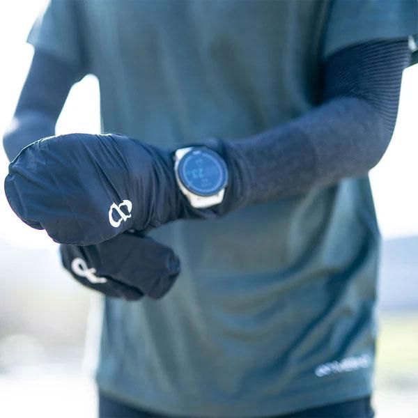 秋から春の3シーズンは、風や雨、標高などにより指先が冷えてくると体温低下にもつながります。特にトレイルの選手達からは、気候のが変化した際の「保険」としてもう一枚、 防風素材のカバーが欲しいと要望が多く届いていました。