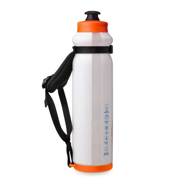 スリムな形状と独自のグリップ溝により、持ちやすく、簡単に絞ることができます。ランニングベストにも収まります。