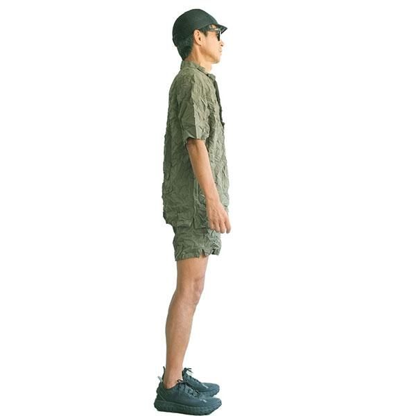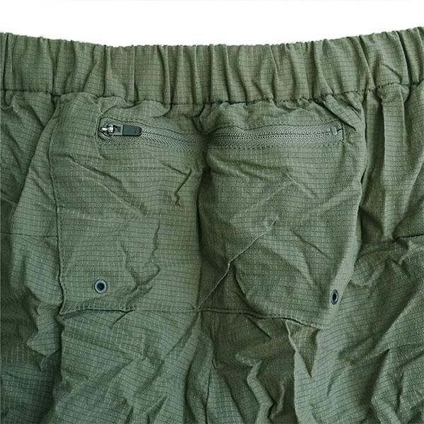 特殊技術により製造された通気孔のある撥水・UV・ストレッチ機能素材COOL DOT'Sを使用。 製品でキャッチワッシャー加工を施しましたオリジナルショーツです。 ミドルランニング・トレッキング・トリップ・ライフスタイルウェアとして 多様性のあるアイテムに仕上がっております。 さまざまなシーンでお使いください。 フロントサイドポケット左右2ヶ所・サイドコンシールファスナーポケット左右2ヶ所・ バックファスナーポケット1ヶ所となっております。 1(S):ウエスト67-101cm、ヒップ108cm、ワタリ幅34cm、裾幅30cm、股上25cm、股下14.5cm、 2(M):ウエスト71-105cm、ヒップ112cm、ワタリ幅35.5cm、裾幅31cm、股上26cm、股下15.5cm、 3(L):ウエスト75-109cm、ヒップ116cm、ワタリ幅37cm、裾幅32cm、股上27cm、股下16.5cm POLYESTER100% 撥水・ストレッチ・通気性・UV・接触冷感吸汗速乾・UV 日本 この商品は手作業にて1点1点丁寧に特殊加工を施しております。 色合い・サイズ等の仕上がりは製品により多少異なります。 加工特性上シワの入り方・着用によるシワの変化は多少発生致します。 この商品でしか味わえない風合いをお楽しみください。 ※アイロンは絶対にしないでください。シワが伸びてしまいます。