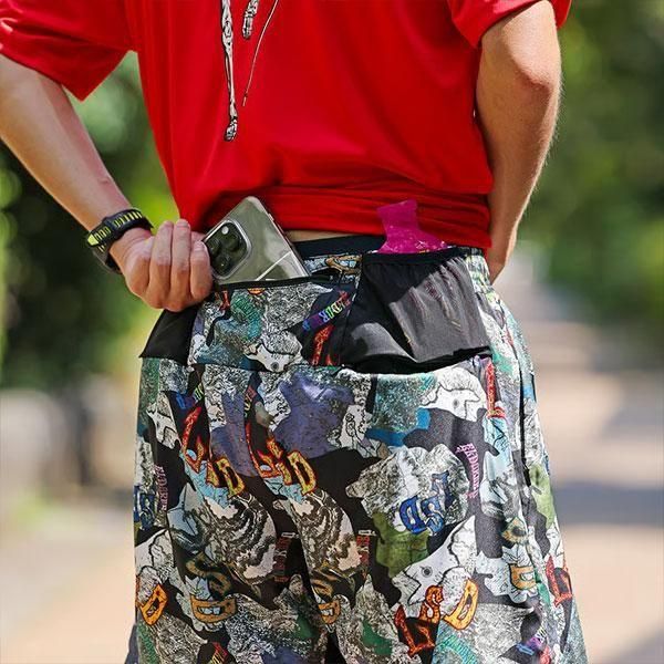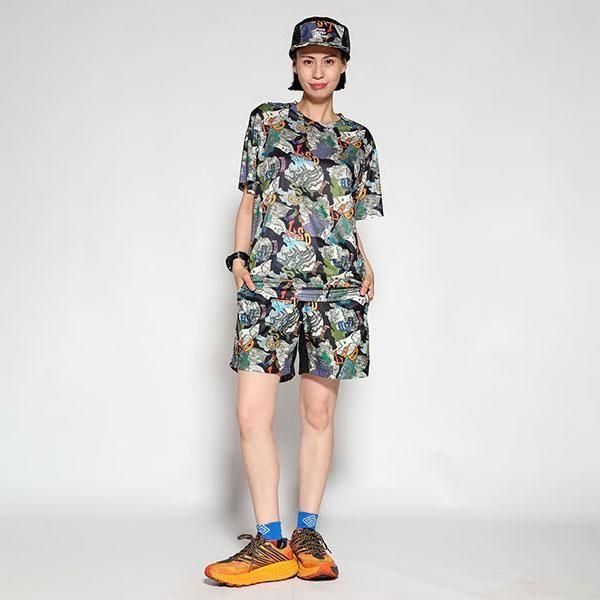 ELDORESOのイメージを確立させたアイテムの一つとも言える、機能性ファブリックに、独創性ある色鮮やかな柄をプリントしたオリジナルテキスタイルシリーズのランニングショーツの新柄が登場。 こちらのショーツの形は、ELDORESOブランドスタート時からリリースしているスタンダードタイプとなります。 メイン素材に吸水速乾・通気清涼の高機能素材「EVER Quick-dryR」をセレクトし製作。 「エバークイックドライ」は、特殊3Dインナードット加工を施した機能素材で、吸湿性・速乾性の優れているスポーツウェア用の生地です。 アクティビティ時に汗を素早く吸収し、肌へのべた付きが少なく、快適な着心地を保ちます。 この高機能ファブリックに適したプリント方法のテストを幾度も重ね、素材に最も適し、生地の特製を損なわない昇華転写プリントで他色使いの柄を表現。 グラフィックデザインに定評のあるELDORESOのエッセンスを詰め込んだ、ビジュアルと機能性を両立させた唯一無二となるデザインのトレイルショーツです。 両サイドのコイルファスナー付きのポケットに加え、腰中央のメッシュポケット、更に右ヒップ部にウォレット等の収納に便利なジップポケットを搭載。 ゴム仕様のウエストには、ブランドロゴのプリント入りのドローコードが付属しており、ジャストサイズでの着用が可能です。 エルドレッソの製品はデザイナーが実際にランニングをする際により使い勝手が良くなるよう、デザイナー自身がテストを繰り返しながら細かな仕様や素材等、製品の仕様をアップデートしています。 足の可動域を広げるために大きく取ったガゼットには通気性の良いストレッチメッシュ素材を採用しており、快適なランニングをサポート。 ワンポイントでブランドロゴのプリント入りです。 短すぎないレングスで、ランニングやトレイルランニングなどのアクティビティのみならず、タウンユースでも使いやすいと、ランナーからの支持も厚いショーツです。 ※インナーは付属しておりません。 (Attention) 摩擦や汗や雨などで濡れた時は他の衣料や下着(特に白などの淡色物)に色移りする場合がありますので十分ご注意ください。洗濯の際は多少色落ちすることがありますので、できるだけ単品洗いをお勧めします。また、他の淡色物に色移りすることがありますので、速やかに脱水・乾燥するようお願い致します。 S:Waist 62〜77cm, FrontRise 30cm, Inseam 16cm, ThighWidth 33cm, Hem 30cm, Outseam 41cm M:Waist 67〜82cm, FrontRise 31cm, Inseam 17cm, ThighWidth 34cm, Hem 31cm・Outseam 43cm L:Waist 72〜87cm, FrontRise 32cm, Inseam 18cm, ThighWidth 36cm, Hem 32cm, Outseam 45cm Material:Polyester 100% Another Fabric:Nylon 90%, Polyurethane 10%