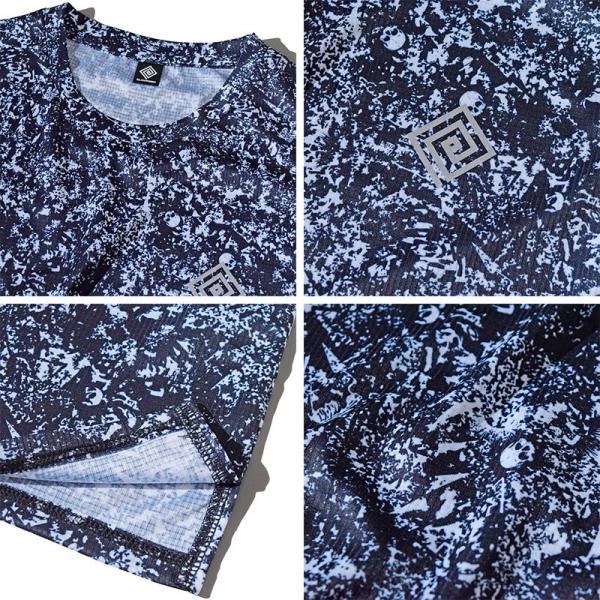 スポーツウェアで多用される昇華転写プリントによるデザインの可能性を最大限に活かすべく、緻密で色鮮やかなグラフィックを表現したオリジナルテキスタイルを使用したノースリーブのランニングシャツです。 胸元のブランドロゴは、ワールドアスレティックスのユニフォームのロゴ規定をクリアしたサイズに設定しているので、公認レースでも着用が可能なランシャツとなっています。 ELDORESOでは幾種もの機能素材をデザイナー自ら実践でのテストを重ね、商品に採用する生地を選定しています。 定番の素材として使用しているこちらの機能素材は、汗をかいても肌離れが良く、そしてアクティビティ時に水分を吸収しても重さを感じづらい、メッシュ状に編み上げられた軽量な生地となっています。 機能性については、実業団選手をはじめとするサポートアスリートからも支持を得ている素材となります。 ランナーからのフィードバックを取り入れ、ランニングパフォーマンスの妨げにならぬようポケット等の装飾を排除し軽量化を実現しています。 ELDORESOの特色ともいえる色鮮やかなプリントを表現しながらも、生地の特性を損なわぬよう、プリントのテストを繰り返し行い、ビジュアルと機能性を兼ね備えた自信をもって提案できる生地の仕上がりとなりました。 生地の凹凸により肌への接地面を減らしたメッシュ素材は、アクティビティ時により快適な着心地を実現しています。 また、薄手で軽量な生地に見受けられる透け感に対しても、プリントの効果により気になりづらくなっているという利点も生まれました。 デザイン性と機能性を両立させた総柄のノースリーブのランニングシャツは、シーズンごとにリリースされる柄が異なる為、リピーター・コレクターの方も多いアイテムです。 S:Shoulder 37cm・Chest 45cm・Length 66cm M:Shoulder 39cm・Chest 48cm・Length 69cm L:Shoulder 41cm・Chest 51cm・Length 72cm Material:Polyester 100%