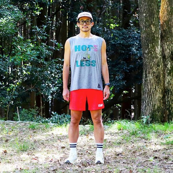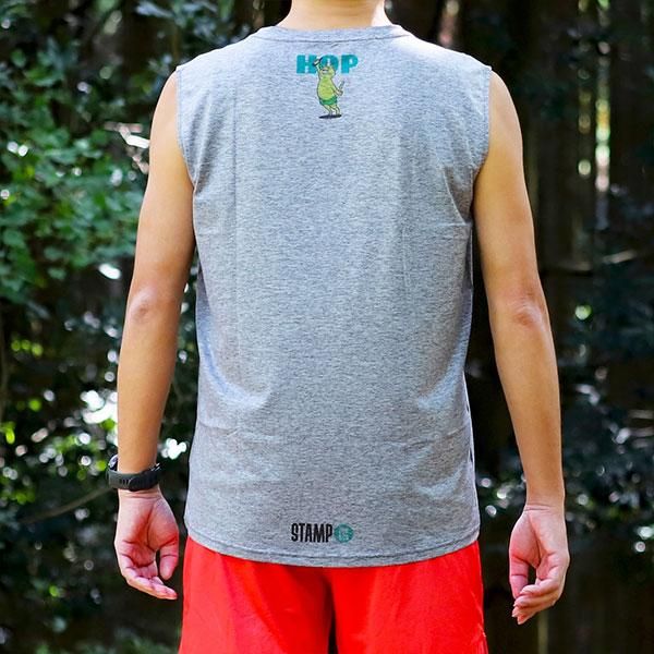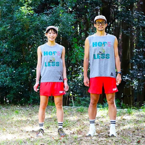 HOP(E) LESS -DAILY- ----------------------------------------------------------------------- スリーブレスのタンクです。 伸縮性が高く、肌触りのいい生地で、非常に着心地のデイリータンクです。 杢グレーの生地にあえて「昇華プリント」でプリントしています。 グラフィックの下の杢柄が出てきて、ちょっと古着っぽい表情が特長です。 ラン後のアフター着や、日常着に最適なウェア。 ポリエステル100%なので、軽いランニングもどうぞ。 ・Sサイズ 着丈(背面)70cm、バスト(脇下)98cm ・Mサイズ 着丈(背面)72cm、バスト(脇下)104cm 素材:ポリエステル 100%