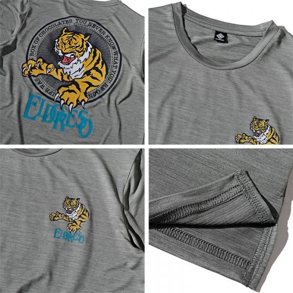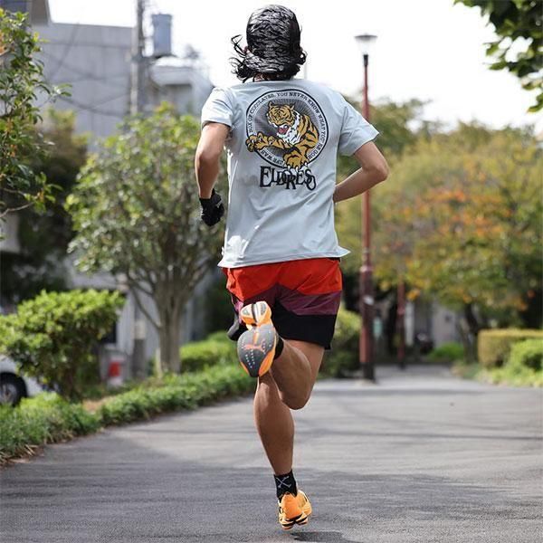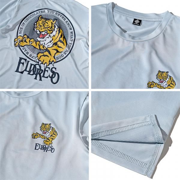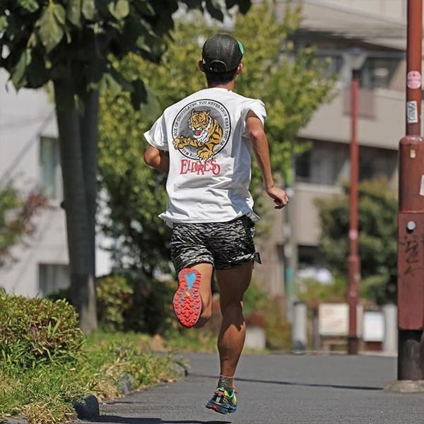 タイガーモチーフのグラフィックを前後にプリントした、半袖のランニングTシャツです。 ELDORESOでは幾種もの機能素材を、デザイナー自ら実践でのテストを重ね、商品に採用する生地を選定。 こちらのシャツには光沢が抑えられた表情で、吸水速乾性とUVカット効果を併せ持ち、汗離れの良いクイックドライのファブリックを採用しました。 ボディは両サイドの裾にスリットを入れた、エルドレッソ定番のボックスシルエットのTシャツの形がベース。 ボディのカラーによってグラフィックの配色に変化を持たせた、細やかなデザインも魅力です。 機能面とファッション性を兼ね備えたランニングTシャツは、そこにあると思わず手に取って毎日でも着たくなるような着心地の、スポーツシーンからタウンユースまで、様々なシーンに馴染みの良いプロダクトとなっています。 S:Shoulder 41cm・Chest 48cm・Length 64cm・Sleeve 20cm M:Shoulder 44cm・Chest 51cm・Length 67cm・Sleeve 21cm L:Shoulder 47cm・Chest 54cm・Length 70cm・Sleeve 22cm Material:Polyester 100%