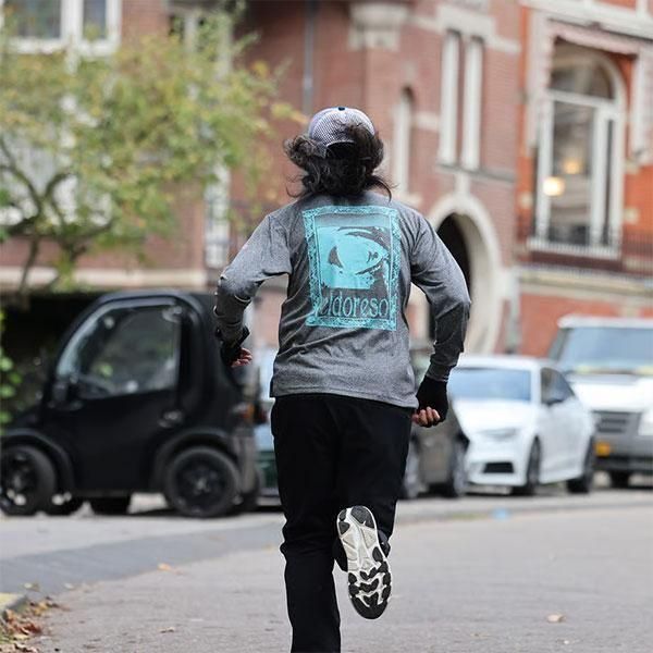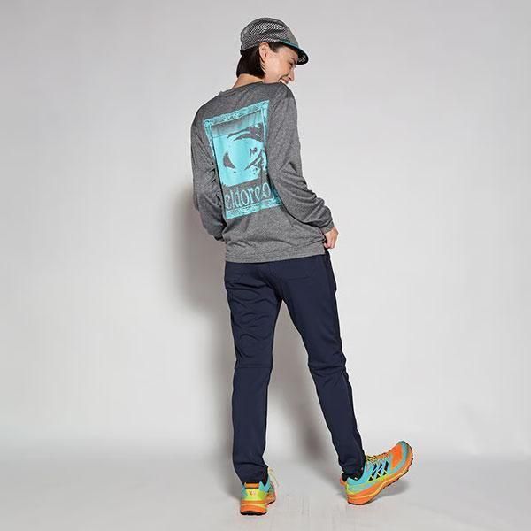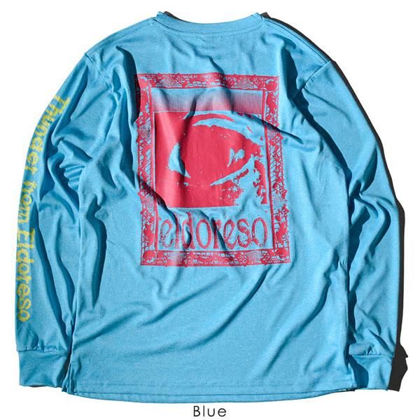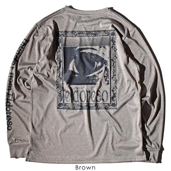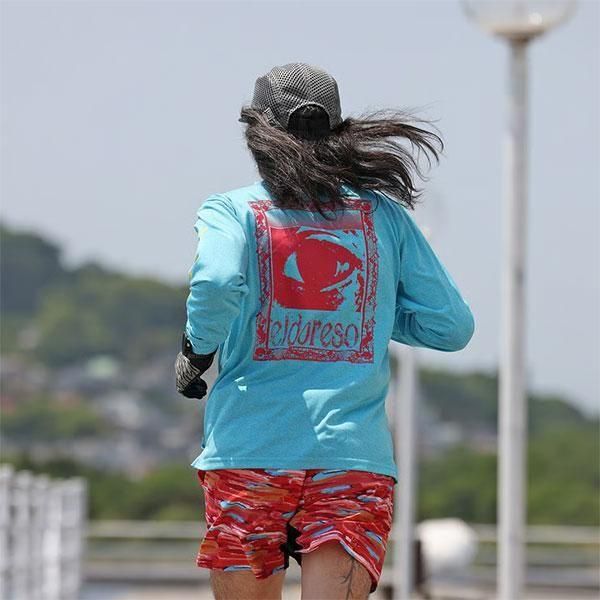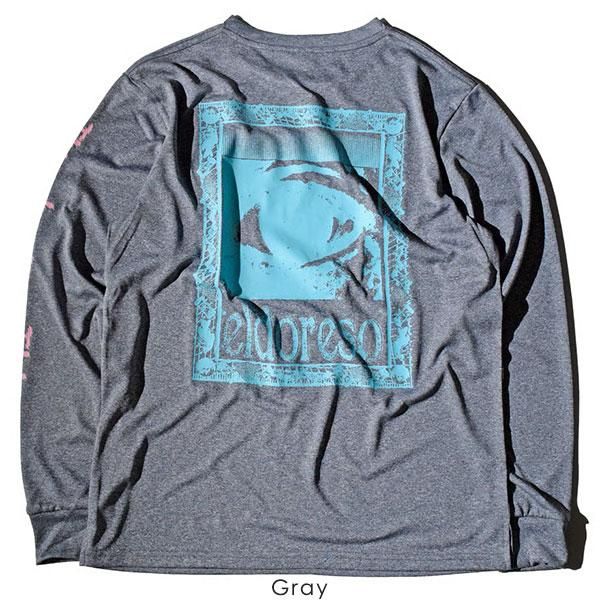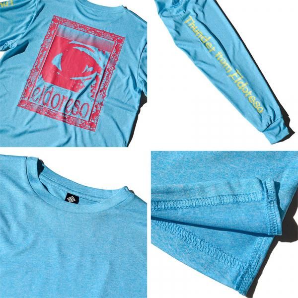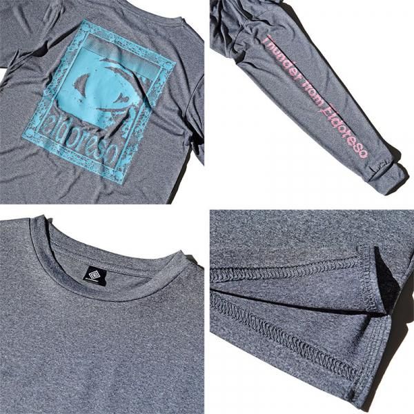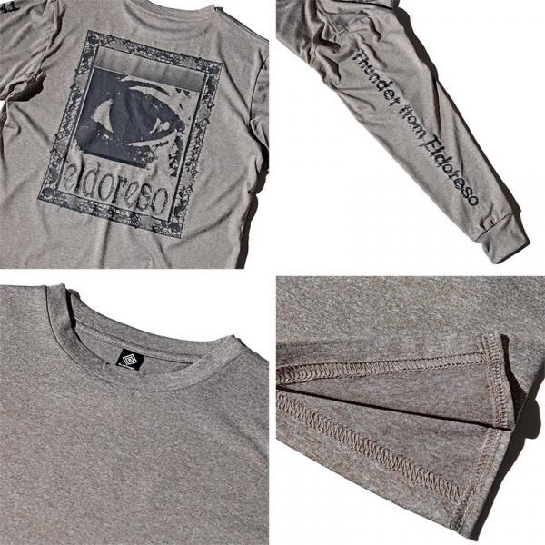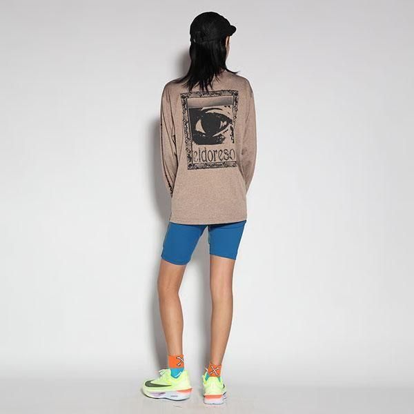 12月上旬発売。ご注文順に順次発送いたします。デザイナーが若かりし日に聞いていた音楽から得たイメージやインスピレーションをグラフィックに落とし込んだシリーズ。 両サイドの裾にスリットを入れたエルドレッソ定番のボックスシルエットのロンTの背中にアイコニックなモチーフをプリント。 左袖に袖プリントをいれたアシンメトリーなデザインがさりげなくユーモラスな長袖のランニングシャツです。 ボディには伸縮性が高く、風合いの良い杢カラーの吸水速乾素材をセレクト。 一般的なスポーツウェアのサイジングではなく、ファッションウェアの長袖Tシャツのサイジングに設定し、クラシックなボックスシルエットのパターンを用い、過度なスポーツ感を抑えたビジュアルに仕上げました。 機能面とファッション性を兼ね備えたELDORESOならではのデザインのランニングシャツは、スポーツシーンからタウンユースまで、様々なシーンに馴染みの良いプロダクトとなっています。 S:Shoulder 43cm・Chest 48cm・Length 64cm・Sleeve 58cm M:Shoulder 47cm・Chest 51cm・Length 67cm・Sleeve 60cm L:Shoulder 50cm・Chest 54cm・Length 70cm・Sleeve 62cm Material:Polyester 100%