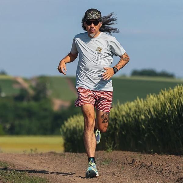 刺繍には蓄光糸を使用し、夜間のランニング時の視認性をも高めています。